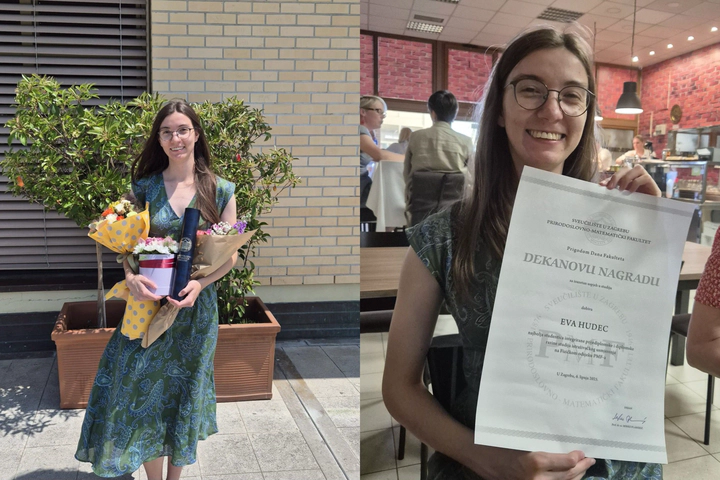 We are proud to share that our Master’s student, Eva Hudec, has received the Dean’s Award for Outstanding Academic Achievement on the occasion of the Faculty Day of the Faculty of Science, University of Zagreb. Eva was recognized as the Best Student of the Integrated Undergraduate and Graduate Research-oriented Physics Program at the Department of Physics. Congratulations on this well-deserved recognition!